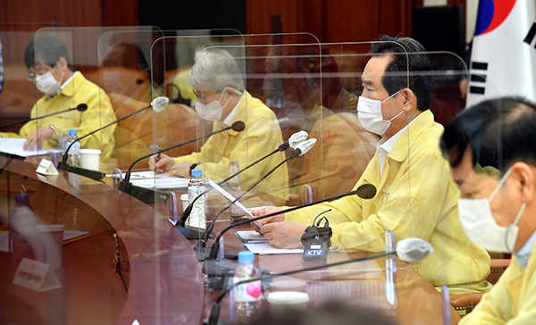 정세균 국무총리가 11일 정부서울청사에서 열린 코로나19 중대본 회의에서 발언하고 있다.정 총리는 “방역을 위해 기꺼이 희생을 감내해주고 있는 수많은 국민들을 생각하면 하루 속히 제한을 풀어야 하겠지만 성급한 완화 조치가 재확산으로 이어져 국민들이 더 큰 고통을 당하지는 않을까 걱정도 된다”고 우려했다.