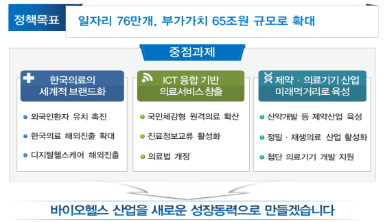 이에 따라 올해 안에 바이오헬스 분야에서 양질의 일자리 5만개, 부가가치 5조원이 창출될 것으로 기대된다.