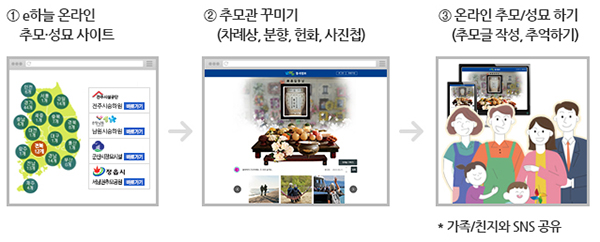 이렇게 온라인에 마련한 추모관은 가족과 친지에 SNS로 공유할 수 있고, 추모글 등을 등록해 온라인으로 추모와 성묘가 가능하다.