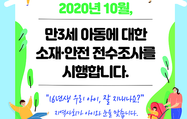 [일간환경연합 장민주 기자]보건복지부와 경찰청이 합동으로 만 3세 아동(2016년생)의 소재와 안전을 확인하고 양육환경 개선에 필요한 서비스를 지원하기 위한 전수조사를 10월부터 12월까지 실시한다.