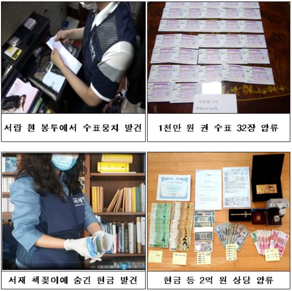 국세청은 금융조회 및 탐문으로 A씨가 주소지가 아닌 분당의 88평짜리 주상복합 아파트에 월세로 살면서 고급 외제차를 몰고 다니는 사실을 파악했다. 조사팀은 A씨 집을 수색해 순금, 일본골프회원권, 명품시계, 명품핸드백 등 2억원 상당의 물품과 현금을 압류했다.