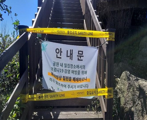 또한 탐방로 및 밀집지점을 대상으로 거리두기 홍보를 강화하는 한편 21개 공원 주요 탐방 밀집지점에 출입금지선을 설치·운영한다.