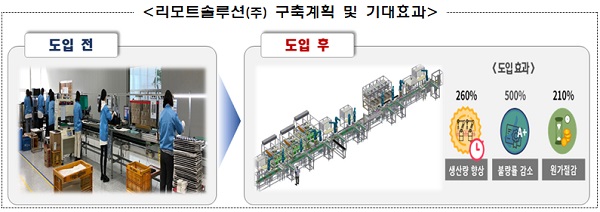 이번 사업에 선정된 리모트솔루션의 관계자는 “우리 회사는 해외 공장 인건비가 지속적으로 증가함에 따라 국내로의 유턴을 검토했는데 이번 기회로 인건비 문제를 해결함과 동시에 로봇을 활용한 효율적 생산라인의 구축으로 균일한 제품 품질을 확보할 수 있게 됐다”고 말했다.