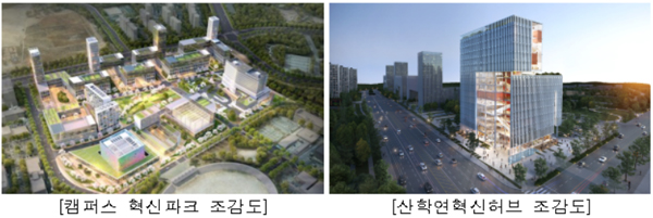 캠퍼스 혁신파크의 사업으로서 국비를 보조해 건축하는 기업임대 공간인 ‘산학연 혁신허브’는 각 대학에 2만 2300㎡(건축물 연면적) 규모로 조성된다. 2022년 기업 입주를 목표로 추진한다.