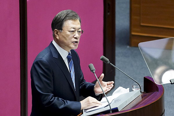 문 대통령은 이날 내년도 예산안 국회 시정연설에서 “오늘 이 자리가 방역과 경제의 동반 성공, 두 마리 토끼를 기필코 잡아낼 것을 함께 다짐하는 자리가 됐으면 한다”며 이같이 말했다.