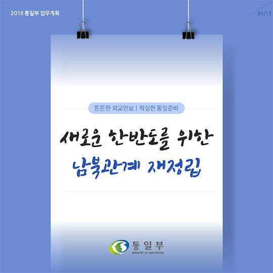 [일간환경연합 장민주기자]2016년 통일부는 올바른 남북관계 정립과 실질적 통일준비를 추진하겠습니다.