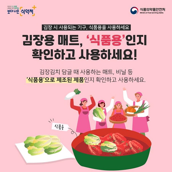 특히 김장용 매트, 대야, 소쿠리, 바가지, 비닐, 도마, 고무장갑 등을 구입할 때 반드시 ‘식품용’ 인지 확인하고 선택해야 한다.