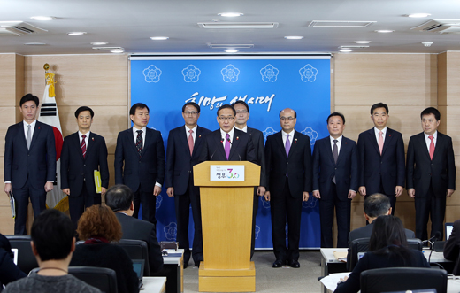 | 홍윤식 행정자치부 장관이 25일 오전 정부서울청사 합동브리핑룸에서 2016 국가혁신분야 업무보고 사전 합동브리핑을 하고 있다. |