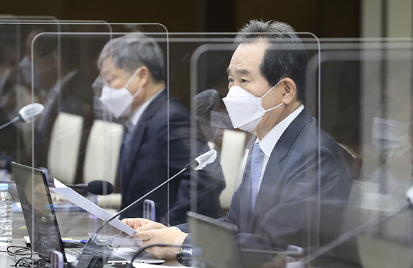 정세균 국무총리가 26일 오전 세종시 정부세종청사에서 열린 국정현안조정회의를 주재하며 발언하고 있다. (사진=(c) 연합뉴스)