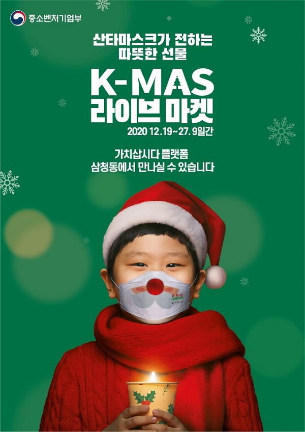 박영선 중기부 장관은 “산타마스크가 전하는 따뜻한 선물! ‘2020 K-MAS 라이브마켓’을 통해 소상공인을 위한 비대면·온라인 소비촉진에 동행하는 가운데 국민모두 산타가 되어 위로와 희망의 온기를 함께 나누는 대한민국만의 특별한 크리스마스 마켓 모델을 만들겠다”고 말했다.
