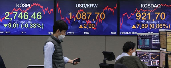 코스닥 시장의 종합주가지수는 1월말 642.48에서 3월 19일 428.35로 최저점을 찍은 후 12월 3일 현재 907.61로 상승했다.