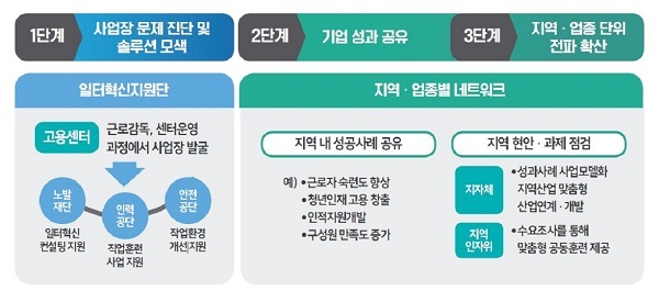 또한 고용노동부 지방관서를 활용한 지역 내 ‘일터혁신 필요사업장 발굴-수준진단-컨설팅-이행’ 패키지 지원 시범을 추진한다.