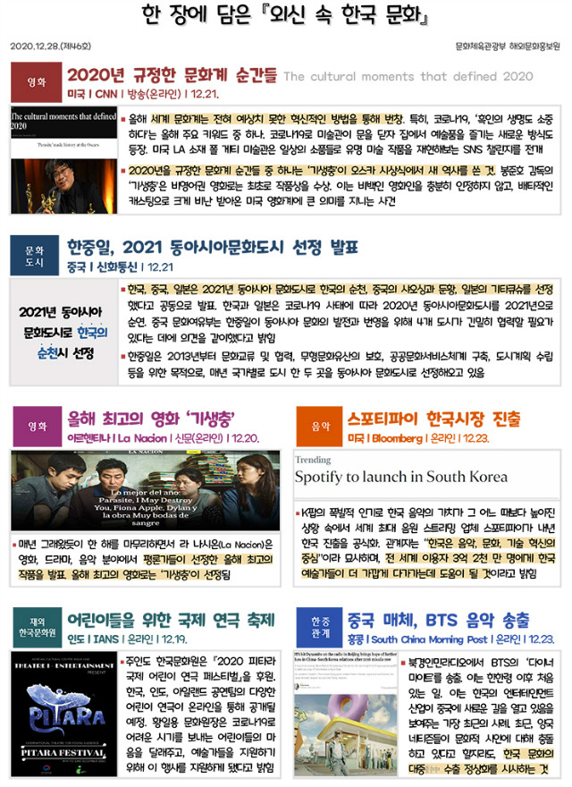 문화체육관광부 해외문화홍보원이 매주 월요일 발행하는 <한 장에 담은 외신 속 한국 문화> 46호를 소개합니다.