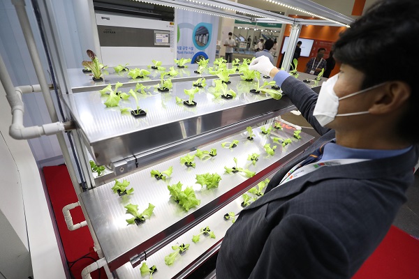 ▲ 지난해 7월 15일 오후 대구 북구 엑스코에서 열린 2020 국제그린에너지 엑스포에서 관람객들이 농산물 생산 단계에서 정보통신기술(ICT)을 접목한 스마트팜 시설을 살펴보고 있다.(사진=(c) 연합뉴스)지난해 7월 15일 오후 대구 북구 엑스코에서 열린 2020 국제그린에너지 엑스포에서 관람객들이 농산물 생산 단계에서 정보통신기술(ICT)을 접목한 스마트팜 시설을 살펴보고 있다.(사진=(c) 연합뉴스)