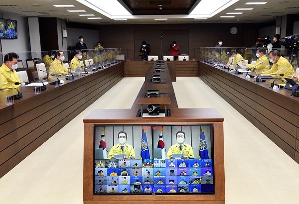▲ 정세균 국무총리가 14일 정부세종청사에서 열린 코로나19 중대본 회의를 주재하고 있다.정 총리는 이날 정부세종청사에서 코로나19 중앙재난안전대책본부 회의를 주재하고 “어제는 지자체의 행정명령에 적반하장식 소송을 제기해 많은 국민들을 아연실색하게 만들고 있다”며 이같이 밝혔다.