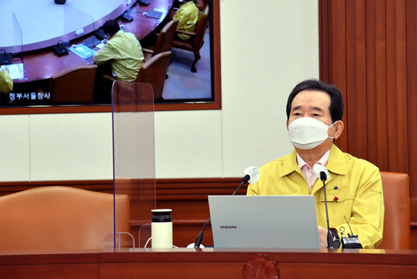 ▲ 정세균 국무총리가 15일 정부서울청사에서 열린 코로나19 중대본 회의를 주재하고 있다.정 총리는 “백신에 관한 우리 국민의 인식을 보여주는 국내 연구진의 설문조사 결과가 주목을 끌고 있다”며 “응답자의 80%가 접종 의향을 밝히면서도 10명 중 7명은 ‘먼저 맞기보다는 지켜보다가 맞겠다’고 답했다”고 언급했다.