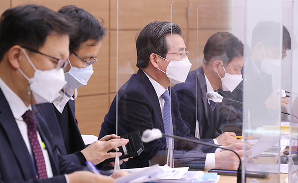 ▲ 김용범 기획재정부 1차관(오른쪽 세번째)이 지난 18일 오후 세종시 정부세종청사에서 ‘2021년 업무계획 발표’ 브리핑을 하고 있다. (사진=(c) 연합뉴스)◆ 코로나19 위기극복 및 리스크 관리
