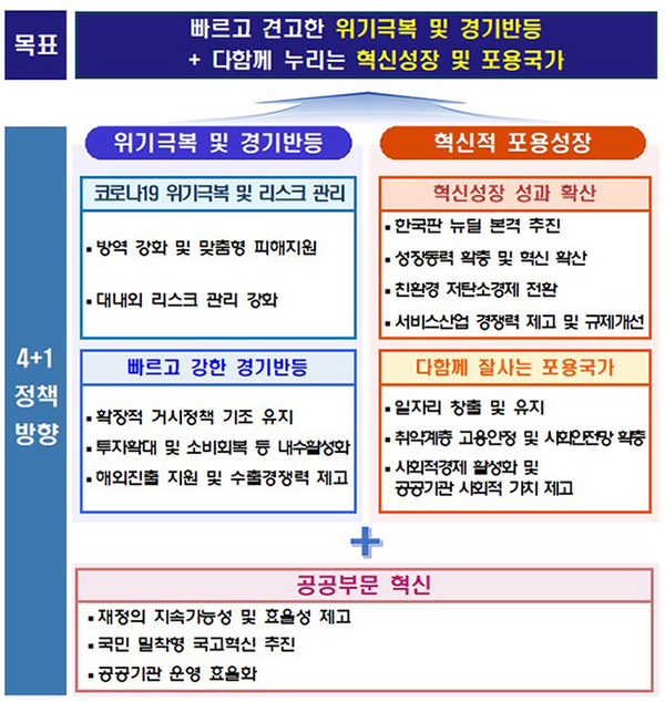 [일간환경연합 장민주 기자]코로나19 위기극복과 경기반등을 이루고 다함께 누리는 혁신적 포용국가를 만들기 위한 기획재정부의 2021년 청사진이 19일 발표됐다.