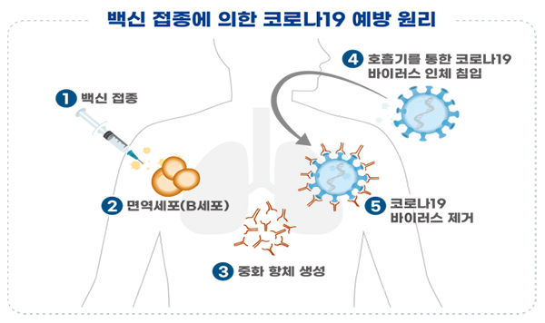 예방원리는 백신의 표면항원 단백질이 면역세포를 자극해 중화항체를 형성함으로써 면역반응을 유도해 코로나19 바이러스가 침입하면 항체가 코로나19 바이러스를 제거하게 된다.