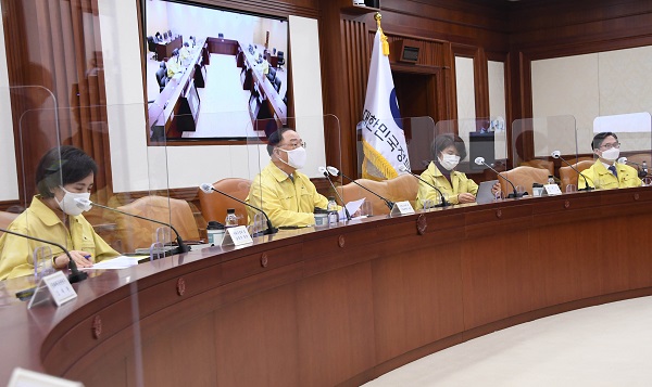 홍남기 부총리 겸 기획재정부 장관이 27일 서울 광화문 정부서울청사에서 열린 ‘제28차 비상경제 중앙대책본부회의 겸 2021년 제1차 혁신성장전략회의’를 주재, 모두발언을 하고 있다. (사진=기획재정부)