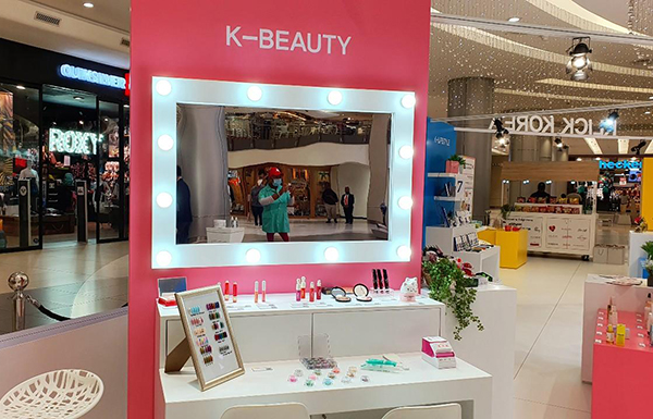 ▲ 지난해 11월 19일 남아공 요하네스버그 샌튼시티몰의 체커스코트에 설치된 한국산 화장품 등 ‘K-뷰티’ 팝업부스. (사진=(c) 연합뉴스)◆ 지속 가능한 K-뷰티 혁신기술 개발