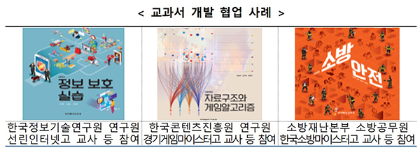 이를 위해 ‘부처협업 교과서’는 연구·집필 단계에 부처 추천 전문인력과 교과담당 교원이 공동으로 참여해 전문지식·기술을 학습자 수준에 알맞게 교과서 내용을 구성했다.