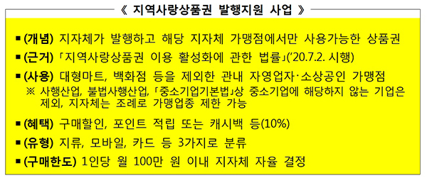 행정안전부는 코로나19로 어려운 지역경제를 지원하기 위해 지역사랑상품권에 대한 신속 판매를 실시한 결과, 계획한 목표액 2조 7000억 원에서 3000억 원을 초과 달성했다고 22일 밝혔다.