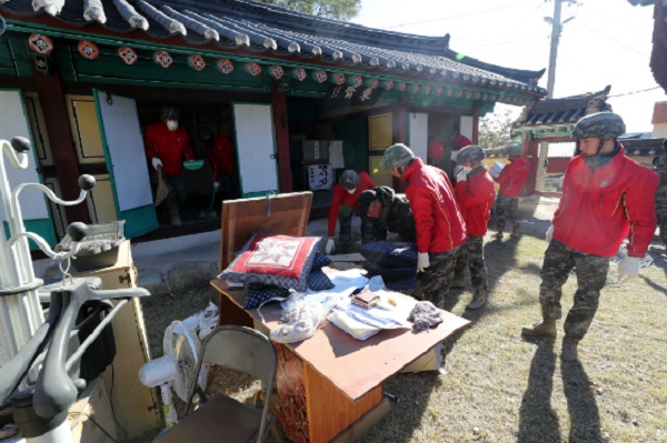 ▲ 지난 2017년 11월 20일 경북 포항시 북구 흥해향교에서 해병대 장병들이 지진피해 복구작업을 하고 있는 모습. (사진=(c) 연합뉴스)한편, 산업부는 법안 시행일에 맞춰 시행령을 조속히 개정할 예정이며 이날 시행령 개정안을 입법 예고했다.
