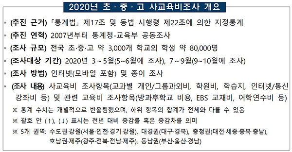 교육부는 9일 이같은 내용을 담은 ‘2020년 사교육비조사 결과 주요 특징 및 대응방안’을 발표했다.