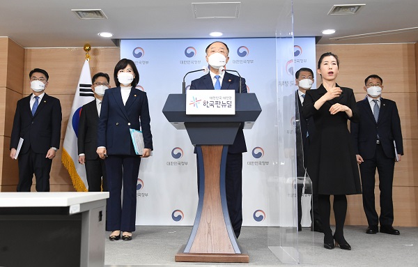 ▲ 홍남기 부총리 겸 기획재정부 장관이 29일 오후 서울 광화문 정부서울청사에서 열린 ‘반부패정책협의회 결과 브리핑’에서 발표문을 낭독하고 있다. (사진=기획재정부)홍 부총리는 “먼저 공직자의 투기를 원천 차단하기 위해 원칙적으로 모든 공직자가 재산을 등록하도록 할 것”이라고 밝혔다.