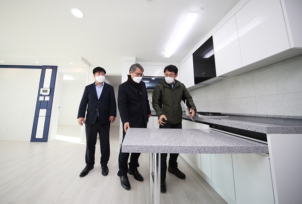 ▲ 작년 12월 3일 오후 경기도 수원시 장안구 송죽동에서 열린 LH 공공 전세주택 미리보기 행사에서 서창원 한국토지주택공사 주거복지본부장을 비롯한 참석자들이 주택 내부를 살펴보고 있다.(사진=(c) 연합뉴스)국토교통부는 ‘서민·중산층 주거안정 지원방안’, ‘공공주도 3080+’ 등 후속 조치의 일환으로 주택도시기금 운용계획을 변경해 ▲공공전세주택 등 다가구매입임대 공급확대 ▲공공지원 민간임대 등 민간임대 공급활성화 ▲주거안정 월세 대출 금리인하 등을 추진한다며 6일 이같이 밝혔다.