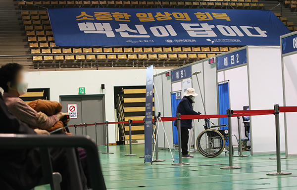 ▲ 수원시 코로나19 예방접종센터에서 만 75세 이상 시민을 대상으로 백신 접종이 진행되고 있다. (사진=(c) 연합뉴스)추진단은 7일 코로나19 백신 분야 전문가 자문회의를 개최, 유럽의약품청(EMA) 총회에서 아스트라제네카(AZ) 백신과 일부 특이 혈전 발생 간 연관성에 대한 검토를 진행 중임에 따라 이 결과를 확인하고 추진하기 위해 이같이 결정했다고 전했다.