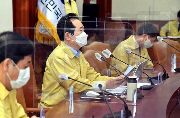[일간환경연합 장영기 기자]정세균 국무총리는 8일 “지금 여기에서 확산세를 막지 못하면 4차 유행이 현실화될 수 있는 그야말로 ‘풍전등화’의 위기상황”이라고 밝혔다.