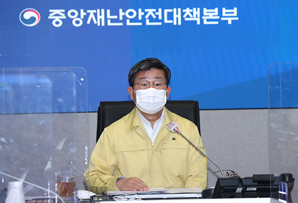 ▲ 전해철 중앙재난안전대책본부 제2차장(행정안전부 장관)이 코로나19 대응 중앙재난안전대책본부 회의를 주재하고 있다. (사진=(c) 연합뉴스)전 2차장은 코로나19 백신 접종 확대를 언급하며 “앞으로 추가 개소되는 63개의 지역 예방접종센터와 접종에 참여하는 위탁의료기관 확대 추세 등을 고려시 이달 중 1일 접종가능 인원은 30만명을 넘어설 것”이라고 설명했다.