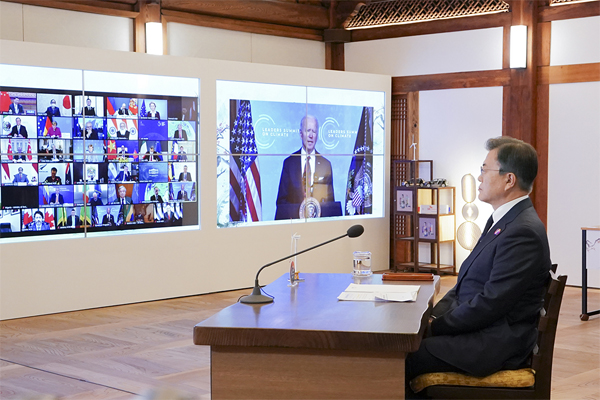 문 대통령은 이날 조 바이든 미국 대통령의 초청으로 열린 화상 기후정상회의 1세션에 참석해 이 같은 내용을 포함한 ‘2050 탄소중립 실현을 위한 한국의 강화된 기후대응 행동’을 약속했다.
