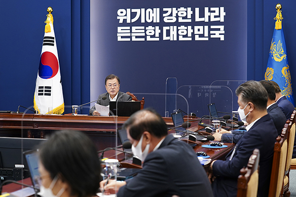 ▲ 문재인 대통령이 26일 오후 청와대에서 열린 수석·보좌관회의에서 발언하고 있다. (사진=청와대)문 대통령은 특히 “다른 어떤 문제보다도 국제적인 연대와 협력이 필요한데도 국제 정치의 현실은 그렇지 않다”며 “여유가 있을 때는 모든 나라가 한목소리로 연대와 협력을 말했지만 자국의 사정이 급해지자 연합도 국제 공조도 모두 뒷전이 되어 국경 봉쇄와 백신 수출 통제, 사재기 등으로 각자도생에 나서고 있다”고 언급했다.