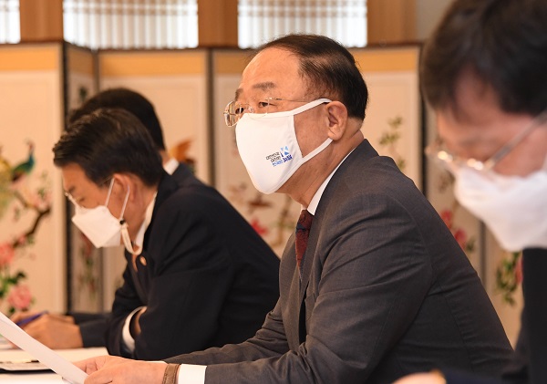 ▲ 홍남기 부총리 겸 기획재정부 장관이 20일 서울 광화문 정부서울청사에서 열린 ‘제22차 부동산시장 점검 관계장관회의’를 주재, 모두발언을 하고 있다. (사진=기획재정부)홍 부총리는 “최근 제기된 부동산 이슈인 기존 부동산정책의 일부 변화 가능성에 대한 갑론을박 및 불확실성을 걷어내는 것이 시급하다”며 “기존 부동산정책의 큰 골격과 기조는 견지하되 변화가 필요한 부분에 대해서는 민의 수렴, 당정 협의 등을 거쳐 가능한 한 내달까지 모두 결론 내고 발표할 수 있도록 해야 할 것”이라고 말했다.