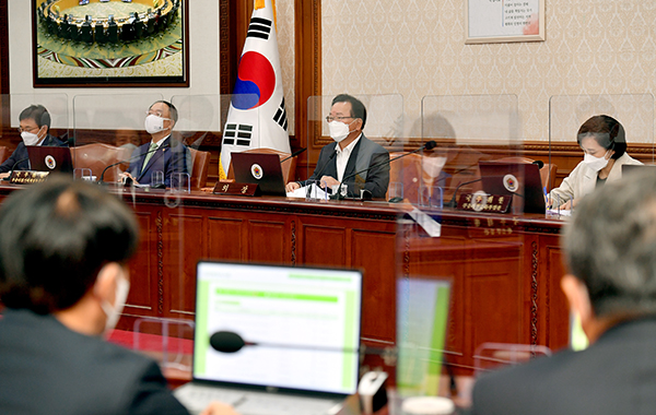 ▲ 김부겸 국무총리가 25일 정부서울청사에서 열린 국무회의를 주재하고 있다.김 총리는 “양국은 한미동맹을 포괄적 호혜적으로 발전시키면서 코로나19 극복을 위한 협력 강화에도 뜻을 함께 했다”며 “미국은 우리의 백신 생산능력을 인정하고 한미 글로벌 백신 포괄적 파트너십을 구축하기로 했다”고 설명했다.