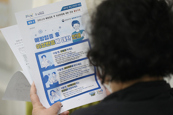 ▲ 27일 한 시민이 충북 청주시 흥덕구 오송읍 베스티안 종합병원에서 백신 접종을 마친 뒤 예방접종 이상반응 안내문을 읽고 있다. (사진=(c) 연합뉴스)김 반장은 “제2차 보상위원회에서는 피해보상 신청금액이 30만 원 미만인 소액 심의대상 162건과 30만 원 이상의 정규심의 대상 28건 등 총 190건을 심의했다”고 설명했다.