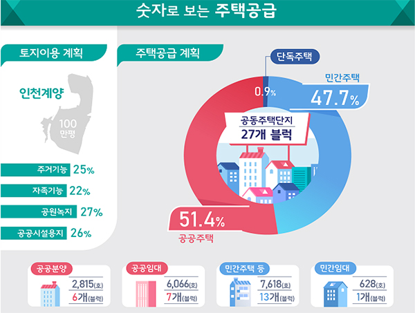 인천 계양 신도시에는 약 1만 7000가구(인구 3만 9000명)의 주택이 공급되며 여의도공원 4배 규모의 공원과 녹지, 판교 테크노밸리 1.7배 규모의 일자리 공간 등이 조성된다.