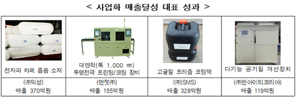 매출액은 정부 투자액 대비 490%인 7050억원이었고 사업화 성공기업은 51개, 사업화 제품 85건, 특허 출원 426건·등록 191건, 고용창출 740명 등의 성과를 얻었다.