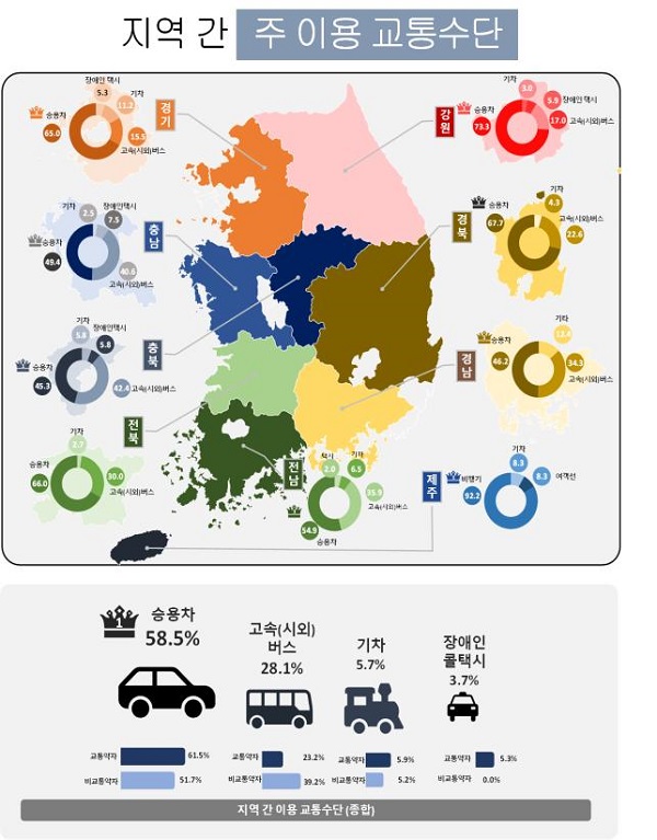 ▲ ※ 최근 1년간 지역 간 이동을 위하여 주로 이용한 교통수단