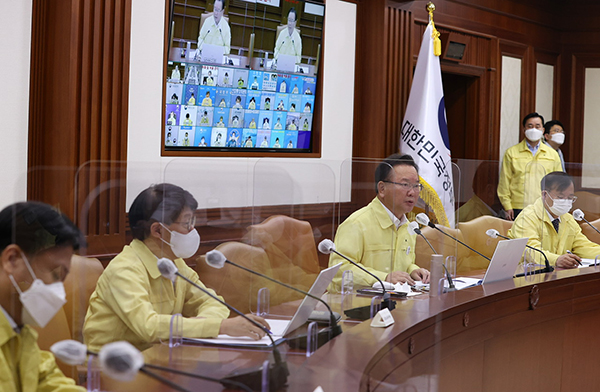 ▲ 김부겸 국무총리가 16일 정부서울청사에서 열린 코로나19 중대본 회의를 주재하고 있다.이에 앞서 정부는 오는 17일 3분기 예방접종계획을 국민에 보고할 예정이다.
