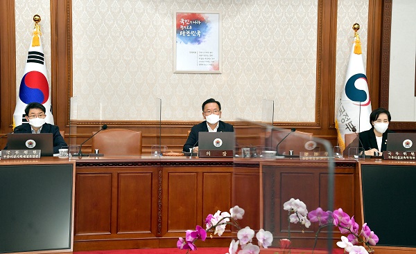 ▲ 김부겸 국무총리가 29일 정부서울청사에서 열린 국무회의를 주재하고 있다.이번 제도개선을 통해 소규모 영세업체들의 경영 여건이 다소나마 개선되는 등 코로나19 조기 극복을 지원하고, 중소업체의 권익보호가 한층 더 강화될 것으로 기대된다.