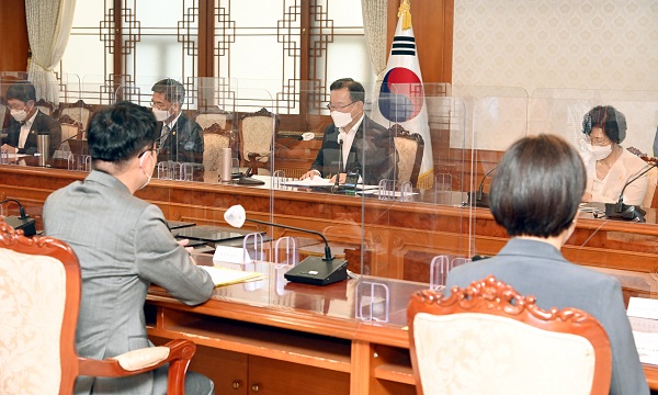 ▲ 김부겸 국무총리가 7일 정부서울청사에서 열린 공직기강 부패방지 관계장관회의를 주재하고 있다.(사진=국무조정실)정부는 7일 오후 김부겸 국무총리 주재로 공직기강·부패방지 관계장관회의를 열고 2021년 하반기 공직기강 확립 추진계획 등을 확정했다.