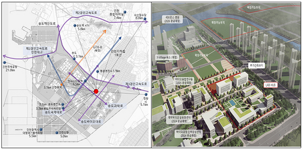 ▲ 인천 송도 ‘K-바이오 랩허브’ 후보지 위치 및 예상 조감도.
