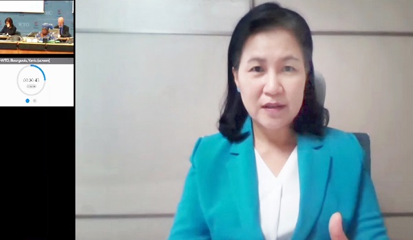 ▲ 유명희 통상교섭본부장이 15일 오후 화상으로 열린 세계무역기구 통상장관회의에 참석해 발언을 하고 있다. (사진=산업통상자원부)WTO 164개 회원국 통상장관들은 수산보조금 협상 타결을 위한 각국의 의지를 확인하고, WTO 각료회의 성과로서 수산보조금 협상을 연내 타결할 필요가 있다는 데 공감했다.
