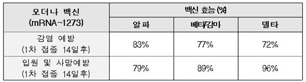 이어 “추가적인 1차 접종 후 입원 및 사망 예방효과는 알파 변이 79%, 베타·감마 변이는 89%, 델타 변이에는 96%로 보고됐다”고 덧붙였다.