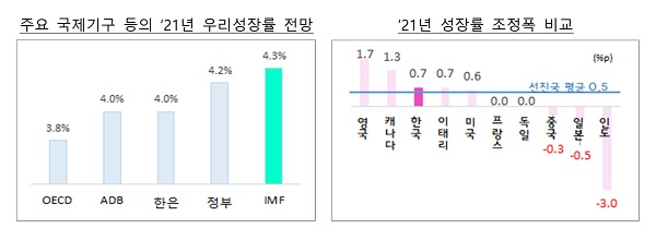 기획재정부 관계자는 “국가간 경기회복 속도의 격차가 더욱 심화되는 가운데 우리 경제의 성장 전망을 4.3%로 크게 상향조정한 것은 의미가 크다”고 말했다.