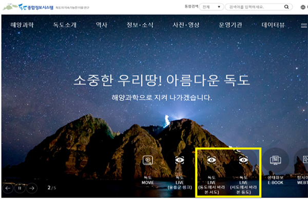 시스템에서는 독도 동도와 서도 등 독도의 아름다운 경관을 국민이 어디서나 실시간으로 지켜볼 수 있다.